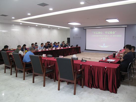 6月4日下午,“不忘初心、牢记使命——云南省庆祝中国共产党成立100周年成就展”工作推进会在我馆召开。会议由云南省博物馆馆长马文斗主持,云南省委宣传部宣教处处长龙怒、云南报业文化投资发展有限公司副总经理苗斌出席会议。云南省委宣传部、云南日报报业集团、云南省博物馆展览项目成员以及设计施工等单位人员参加会议。会议主要布置近期工作,督查展览各项工作进度,讨论存在问题,并就展览开幕式做重点讨论。龙怒处长做会议总结,指出展览的重要性和时间的紧迫性,强调安全施工,高度重视文物安全,要求尽快落实网上展厅等事宜,严把内容质量关。