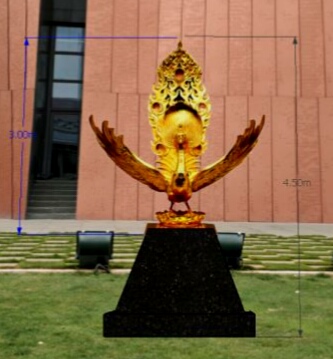 本次定制雕塑安放位置位于云南省博物馆前广场主入口绿化带内,定制的雕塑为馆藏大鹏金翅鸟,雕塑使用的材料为铜鎏金(钛金)等。