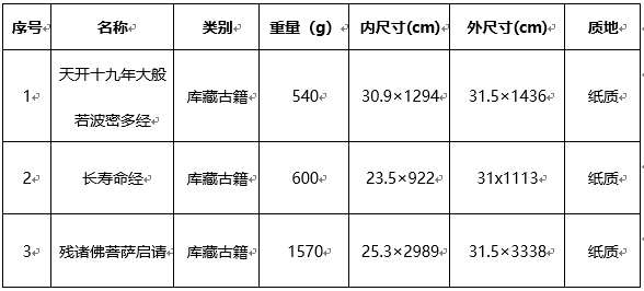 2.上表三件经卷文物,每件文物需复制两份,共计复制六件;