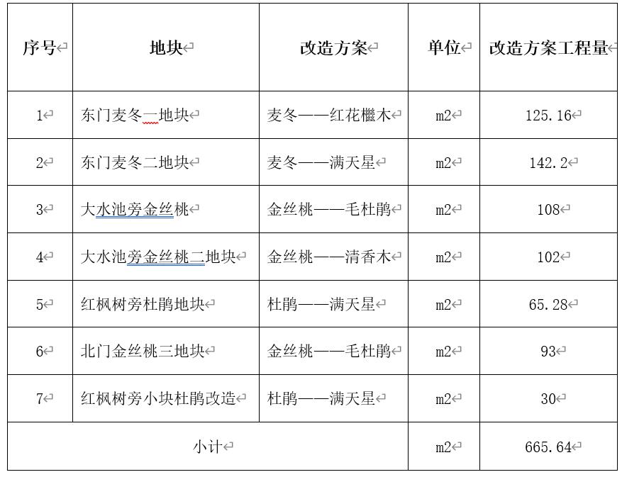 因我馆部分室外绿篱、地被已过最佳生长年限,为保障我馆给广大人民群众提供室外优美的绿化环境,现将我馆室外665.64㎡的灌木和地被进行改造,改造情况如下: