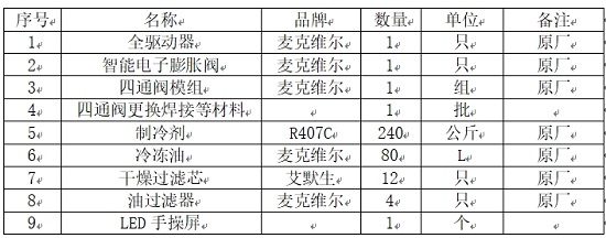 二、空调耗材清单: