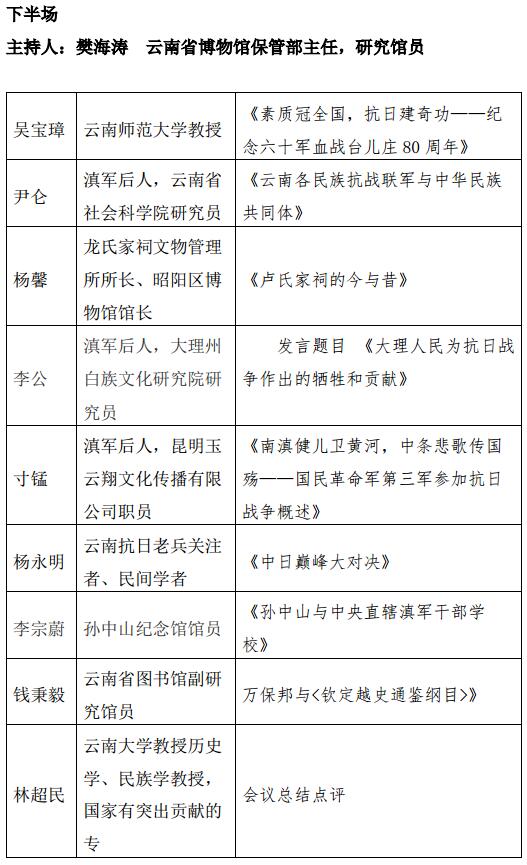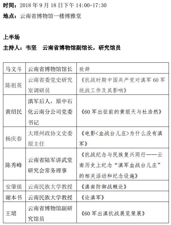 云南省博物馆“60军出滇抗战”学术研讨会议程