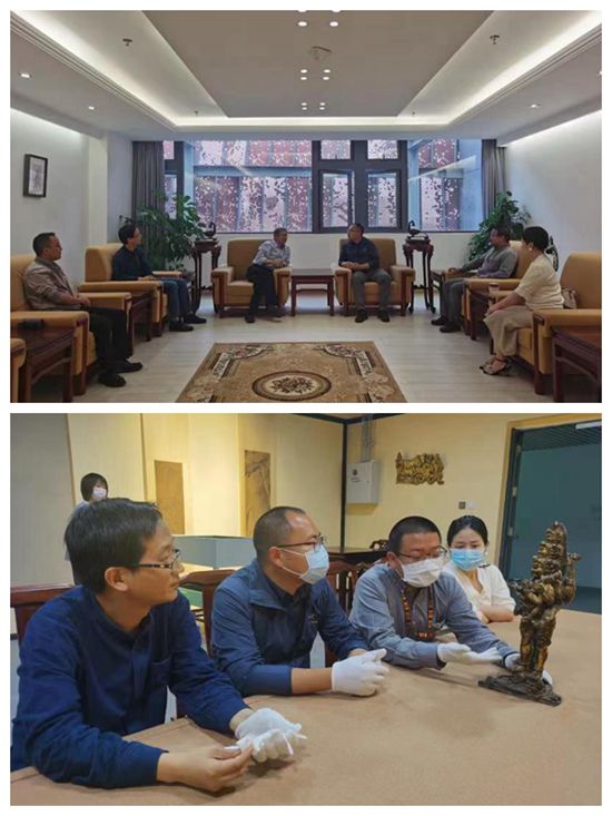 双方业务人员首先对我馆馆藏的大理国佛教文物、滇青铜器、书画等文物进行了现场实物鉴定交流和学习。接下来的座谈会中,云南省博物馆馆长、国家文物进出境审核云南管理处处长马文斗向来宾介绍了现阶段国家文物进出境审核云南管理处的人员配置、文物审核管理相关业务工作的开展和推进,并针对云南、四川两省文化和文物的差异,对双方业务人员的交流和学习互鉴活动提出了期望。两省业务人员就具体工作涉及到的馆藏文物定级的操作方式、拍卖审核标准、拍卖公司和网络拍卖管理、涉案文物办理、拟征集品审核等工作的开展进行了深入探讨。