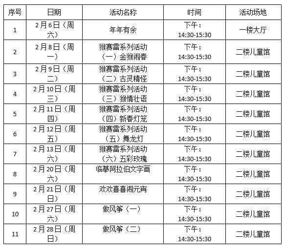 注:活动接受4岁以上小朋友报名,每场活动限30名小朋友参加