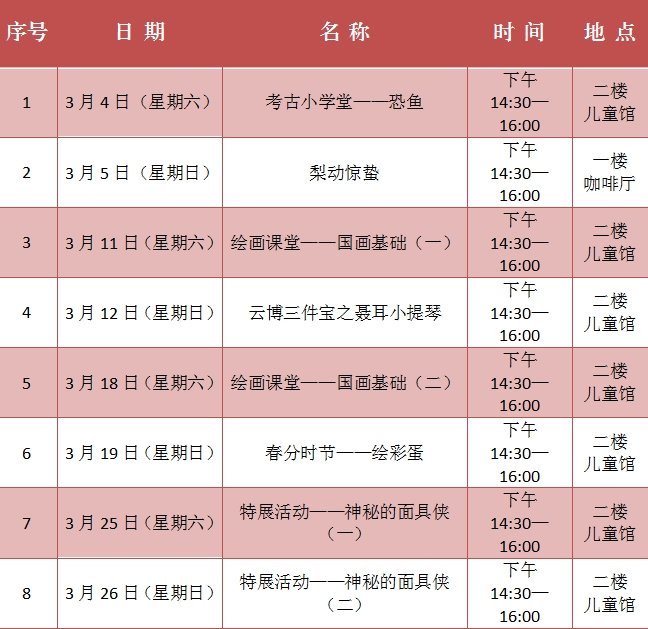 4、预约成功的朋友,请准时于当天下午14:30以前到达云南省博物馆。迟到10分钟以上将取消您的预约,累计3次预约不到者,云南省博物馆社教活动将不再接受您的预约。