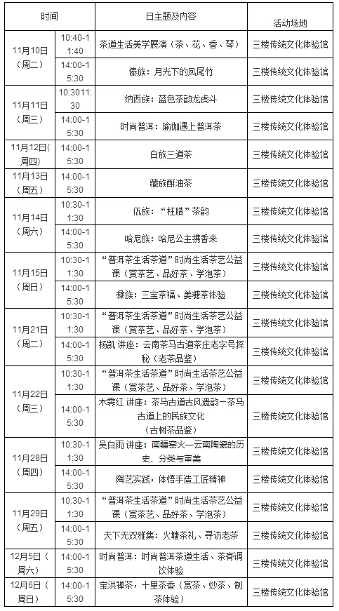 一、传统文化体验馆活动安排:中华茶马古道与生活美学文化季