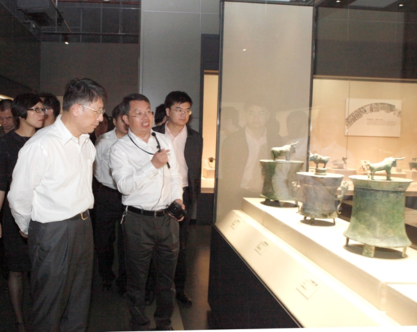 2015年6月12日下午,上海市委常委、市委统战部部长沙海林任团长的上海党政代表团一行,在云南省政府扶贫开发办公室领导陪同下参观我馆。我馆法人代表、主持工作副馆长戴宗品陪同参观并作了细致讲解,上海客人重点观看了古滇国青铜器,深深感叹云南先民创造的辉煌历史,领略了云南青铜文化的无穷魅力,客人们均表现出极大的兴趣。副馆长韦坚陪同参观。