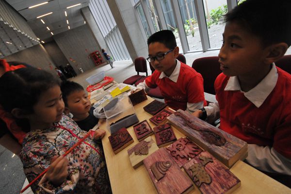 与此同时,我馆还精心策划了一系列教育体验活动。在一楼大厅,由我馆小小志愿者现场提问,答对的观众可以亲身体验甲马纸的模版制作;在二楼儿童馆,许多家长陪伴孩子参与“巧绘吞口”的体验活动;在三楼中国文化体验馆,“茶道美学”体验活动吸引了许多观众的目光,市民龚女士一家在现场感慨地说:“中国文化真是博大精深,茶学太有意思了”…