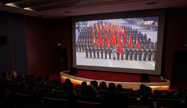 然而,很多观众无法到现场观摩,甚至无法守候在电视机前。但是没关系,在云南省博物馆影视厅,观众既能享受到博物馆精彩的展览,也不会错过这场盛典。3日上午9:30,云南省博物馆利用自身优势,本着人性化服务的理念,于馆内影视厅现场直播9.3阅兵式。“博物馆真的很用心,这样展览也看了,阅兵也看了,一举两得!”现场观众感慨道。