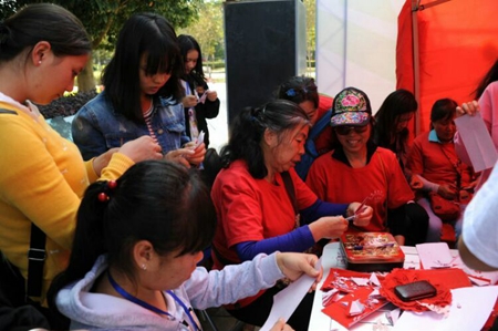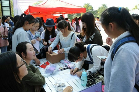 学生们勇跃参加填写卡片,抽奖者可参加到陕西重走红军长征路的活动哦