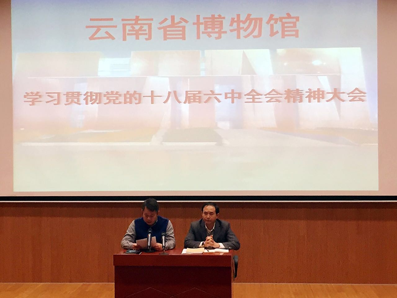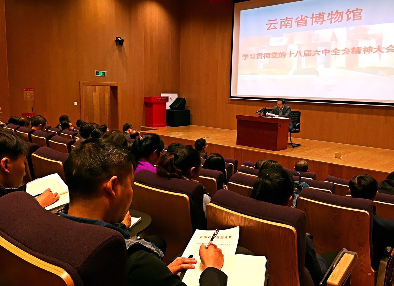 戴宗品在会上要求,全馆干部职工、尤其是全体党员同志要把学习宣传贯彻全会精神作为加强理论武装的重点任务,进一步增强政治意识、大局意识、核心意识、看齐意识,更加紧密地团结在以习近平同志为核心的党中央周围,更加坚定地维护以习近平同志为核心的党中央的权威,更加自觉地在思想上政治上行动上同以习近平同志为核心的党中央保持高度一致,更加扎实地把党中央、省委和省文化厅党组的各项决策部署落到实处,更加积极有为地将云南省博物馆的公共文化服务工作做出成效。