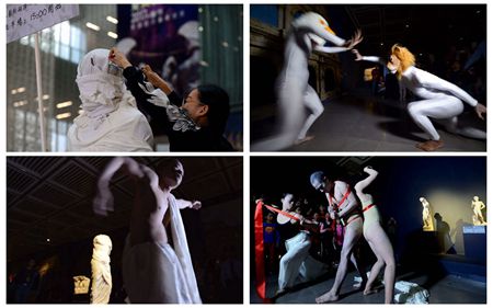 11月19日和下午,云南省博物馆的观众收到了一份特殊的“礼物”——数十位来自“剧变昆明”和“無言•舞语”的多媒介知名艺术家,根据古罗马时期著名建筑、雕塑、画作、文学、美学等作品为素材,结合云南省博物馆《永恒之城——古罗马的辉煌》展览,把自己化为“活体雕塑”,游走于场馆各处,创作12幕现场艺术表演,呈现当代艺术与古罗马艺术的巅峰对话。