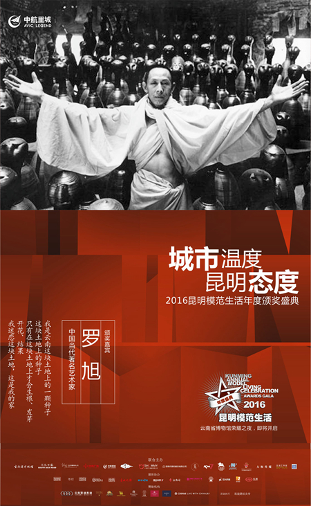 他是昆明的土著,他有着艺术家典型的妄想和异行,他是罗旭,这座城市是他的创作地与艺术之源。2016昆明模范生活颁奖盛典,12月9日荣耀启幕,中国著名艺术家罗旭亲临颁奖,模范生活艺术范。