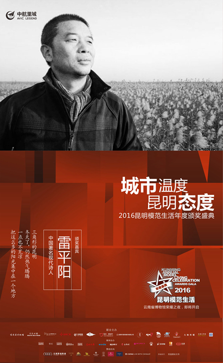 昭通的汉子,云南的诗人,从昆明的形状到城市的阳光,被他一一写进诗中。12月9日,2016昆明模范生活年度颁奖盛典荣耀启幕,中国著名现代诗人雷平阳亲临现场。以诗人的态度为昆明模范生活颁奖。