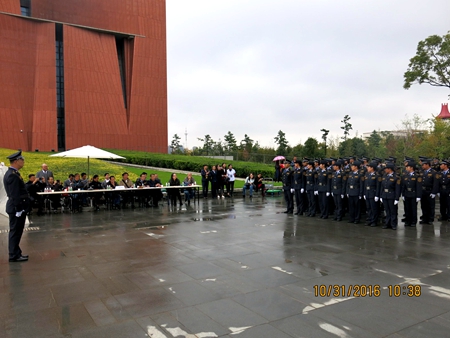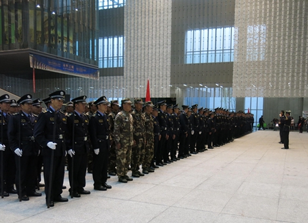 2016年10月31日上午,昆明市公安局护卫管理支队年度军事考核工作在我馆前广场举行。参与考核的包括昆明市护卫管理支队一、二、三大队,共20多家昆明市各行各业的单位参加军事考核。考核项目包括队列、擒敌拳、应急棍三项。我馆馆领导及各部门工作人员到场观摩了考核展演。我馆护卫队在军事考核中表现精彩、气势如虹,展现了我馆安全保卫力量的风采,为我馆赢得了荣誉。