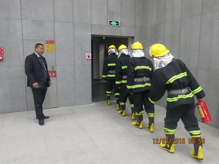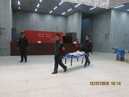 演习当日,负责我馆消防工作的相关部门对初期火灾的扑救、控制、火场协调指挥,火场人员疏散引导和伤员救护,灭火器材现场灭火等内容进行演练,并对火灾事故处理教育及演习进行总结分析。