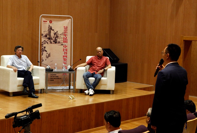 2016年7月16日下午,“中国书画鉴定”培训班最后半天的课程在云南省博物馆一楼报告厅继续进行。中央美术学院院长范迪安和云南美术馆馆长罗江与学员们进行现场互动,就博物馆与美术馆的展览策划展开多角度、多维度的交流讨论,内容涉及博物馆策展人的工作开展、引导观众欣赏艺术展览、打造云南特色展览、媒体在展览策划中的作用等。现场互动氛围活跃,学员提问专业性强,老师解答深入实用,达到了很好的培训效果。