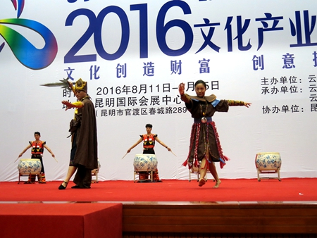 8月11日上午11时,昆明国际会展中心7号馆大舞台上,“滇王庄蹻”和“滇国公主”惊艳亮相,这是一支结合了cosplay表演的舞蹈《祥瑞古滇》。