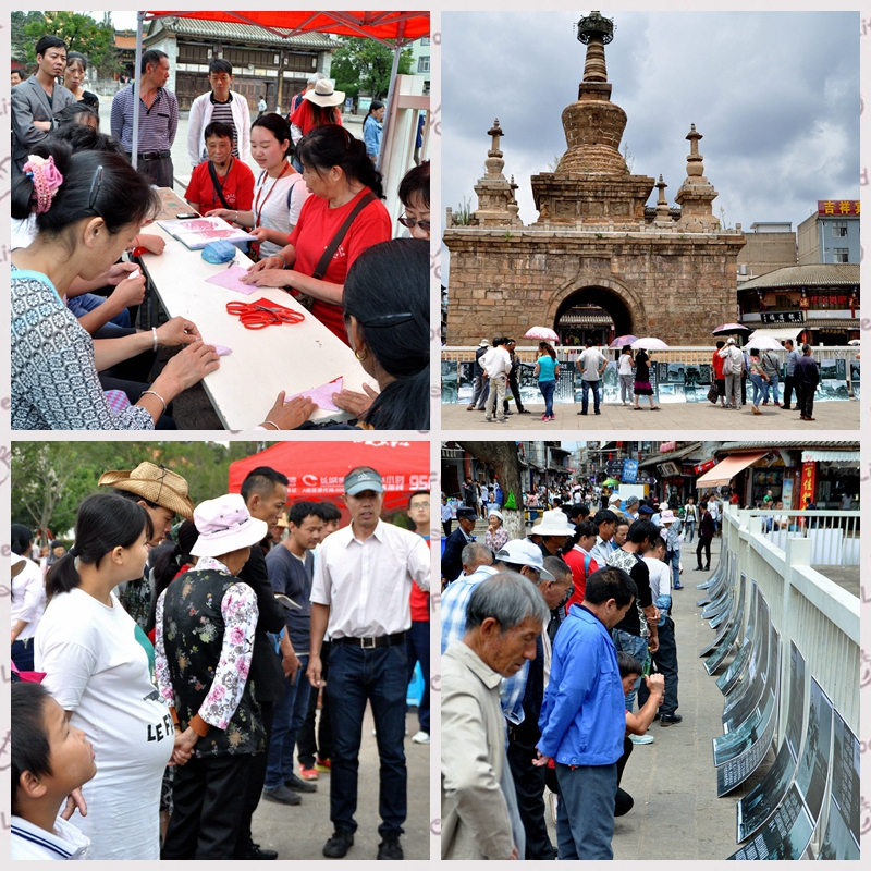 官渡古镇是云南历史文化名镇,始建于唐代。傲然耸立其中的金刚塔也已有500多年的历史,承载着极其重要的文化价值和艺术价值,成为古镇的标志之一。此次巡展选址在这里很好地扩大了活动影响力,吸引了许多当地民众和外地游客驻足观光。巡展内容围绕昆明的历史文化变迁、云南地区非物质文化遗产展开,包括80块昆明老照片展板、17块非遗传承展板,向人们展示了老昆明的风貌民俗与云南民族民间的文化特色。