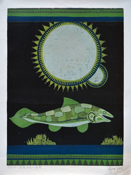 《没有红色的鱼形》绝版木刻 45.5×60cm 1995年