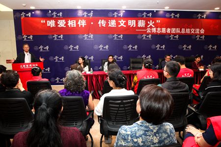 云南省博物馆志愿者团队一直以来都深受社会各界的好评。7月12日,“唯爱相伴·传递文明薪火”云博志愿者团队总结交流会在省博物馆举行。从会上获悉,目前云博志愿者团队(以下简称“团队”)共计446人,2017年上半年服务时长超过1.6万小时。省博物馆馆长马文斗透露,不久后将面向公众逐步公开博物馆的全部藏品情况,接受社会各界的监督。会后,著名文博专家、云南省文物鉴定专家委员会主任张永康先生与志愿者互动交流,回答志愿者提问。