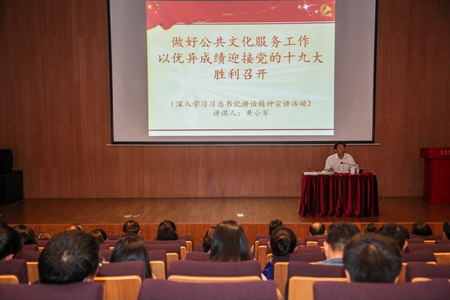 为深入学习宣传贯彻习近平总书记一系列重要讲话精神,引导全馆党员、职工把思想统一到讲话精神上来,做好公共文化服务工作以优异成绩迎接党的十九大胜利召开。