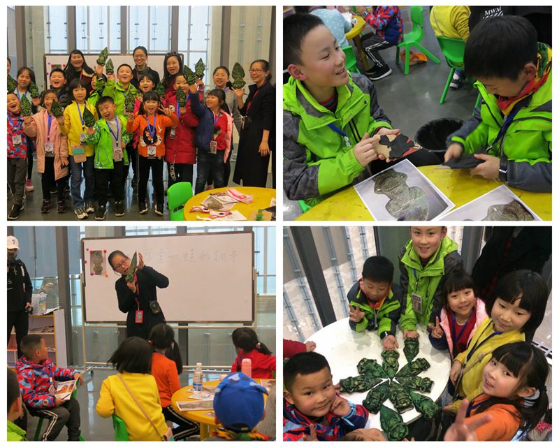 手工体验课程运用了回收的纸板、超轻黏土和水溶性颜料等综合材料,生动逼真地还原出一个立体的“蛙形铜矛”,孩子们看到自己的作品一点点成型,无不感叹材料运用的神奇效果。