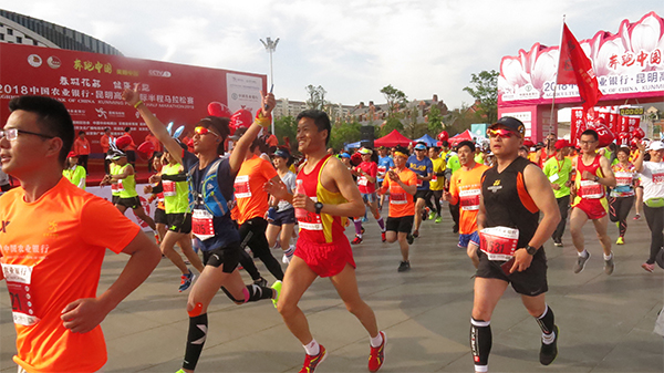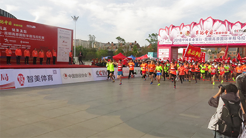 4月14日上午8时30分,2018昆明高原国际半程马拉松赛正式在云南省博物馆鸣枪起跑,15000名身着橙色比赛服的跑友迎着朝晖,在滇池之畔的滟滟春色的陪伴下一路向终点进发。