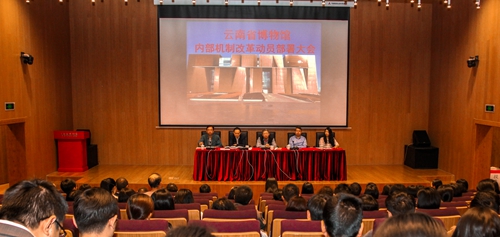 4月25日上午,云南省博物馆内部机制改革动员部署大会在我馆召开,馆长马文斗、党总支书记马云川、副馆长戴宗品、副馆长田景能、副馆长谭粤红,以及全馆干部职工出席会议。会议由马云川书记主持,马文斗馆长在会上做动员部署讲话。