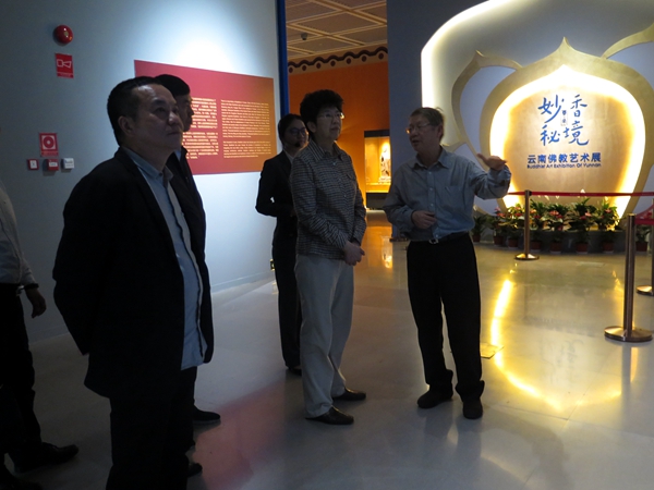 4月25日,中国文联党组成员、副主席、书记处书记赵实同志一行赴云南省博物馆进行参观调研,云南省博物馆馆长马文斗、书记马云川陪同参观。