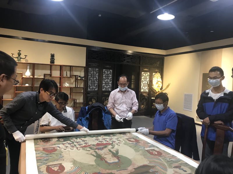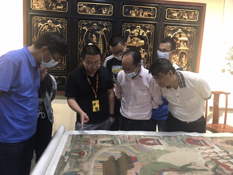 2018年9月25日,四川大学藏学研究所熊文彬教授带领西藏博物馆展览部巴桑罗布一行四人,专程到本馆研究本次展览首次公布的馆藏鸡足山悉檀寺佛画,并与我馆佛教文物专业研究人员进行了交流。