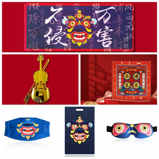 近日,云南省博物馆组织了一批物资驰援湖北省博物馆,其中包含围巾、徽章、口罩等文创产品180余件,各类书籍、明信片12本。其中与骏宇文创公司共同开发的“万害不侵”系列文创,取自藏戏面具元素,寓意守护,诸恶莫作,万害莫侵,包含了云博人对湖北的深切祝福。