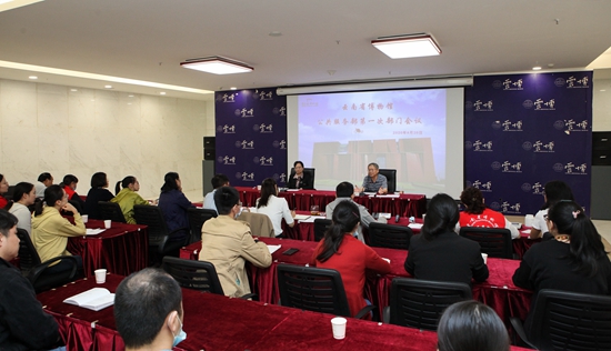 2020年8月20日,云南省博物馆公共服务部召开了部门会议。全体领导班子成员及部门工作人员参与此次工作会议。会上,公共服务部主任马竹松介绍了新部门现阶段的基本情况及部门的规章制度,副主任李娅对讲解与观众服务工作进行了安排,副主任曹丽芳就博物馆教育活动和志愿者工作思路进行了介绍。此外,部门工作人员及志愿者代表分别介绍了各自工作的开展情况,并提出了下一步的工作计划和目标要求。最后,副馆长韦坚分享了她对公共服务工作的理解,马文斗馆长表示,本次会议是公共服务部在机构改革后的重要会议,希望大家要用心、用情工作,发扬团结协作的精神,并表示将大力支持和帮助解决部门工作中遇到的难题,在今后的工作中为公众提供更优质的服务。