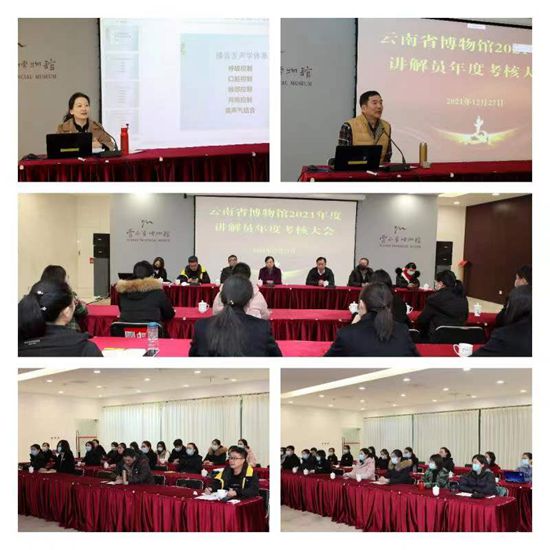 为提升我馆讲解员业务素质,打造我馆文化的窗口形象,12月27日,由我馆文物研究专家和馆外播音主持专家组成的5人考核评审团对我馆10名讲解员进行年度综合素质考核。考核内容为一楼“不忘初心 牢记使命——云南省庆祝中国共产党成立100周年成就展”和二三楼常设展区“云南历史文明陈列”的现场讲解,共计10个部分,讲解员根据抽签顺序依次接受考评。