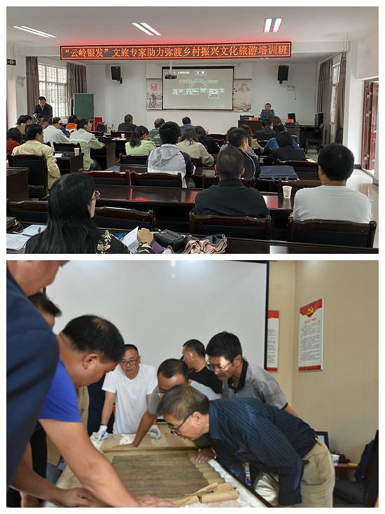 专家组由我省著名文博专家张永康先生带领,对弥渡各文保点进行了实地调研,对弥渡博物馆馆藏文物进行了鉴定,新确定珍贵文物44件套,并围绕文物与博物馆学基础知识,向弥渡文物管理和业务人员开展“文物学概论”“南诏大理国历史文化”“中国古代书画鉴定基础”“博物馆展陈”“中国古代陶瓷鉴定”等系列培训。同时,专家组和当地文物管理部门开展座谈,对弥渡博物馆展览陈列提升改造、文物预防性保护、文物保护修复、文化创意产品方案等内容进行了积极探讨,并提出具有专业性的可操作意见。