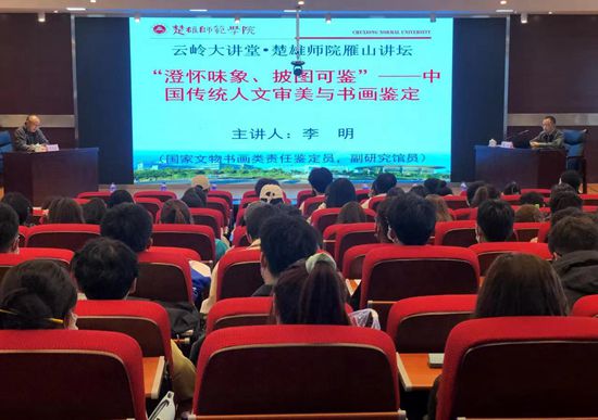 10月19日,由中共云南省委宣传部、云南省社科联主办,“云岭大讲堂”在楚雄师范学院开讲。我馆鉴定站国家文物责任鉴定员、副研究馆员李明应邀作为主讲人,为楚雄师院广大师生进行了《澄怀味象、披图可鉴——中国传统人文审美与书画鉴定》的专题讲座。