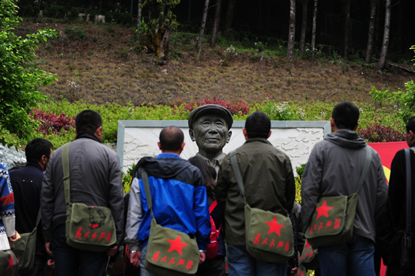 在施甸县大亮山善洲林场,大家一路看到了老书记生前种下的万亩果松林,参观了老书记和林场职工一起工作、学习、生活过的老窝棚、老场部和故事林,观看了老书记生平事迹展览和影片《蓝天访谈》。在老书记的墓园瞻仰公仆楷模、敬献花篮鲜花,在墓碑下重温入党誓词……