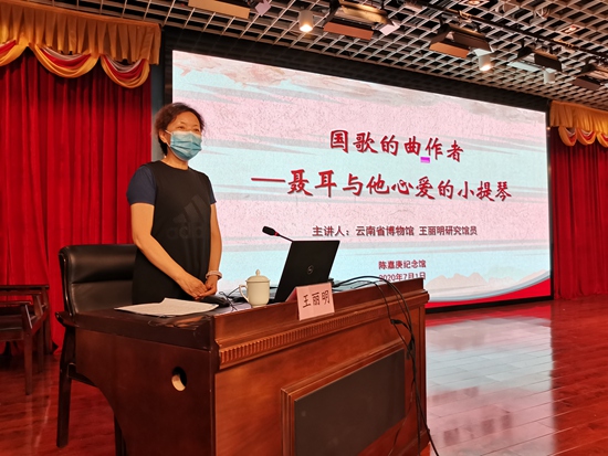 2020年7月1日,由云南省博物馆、厦门市陈嘉庚纪念馆联合举办的《人民音乐家聂耳》展览在陈嘉庚纪念馆开展。在完成展览任务的同时,我馆的党员同志积极与陈嘉庚纪念馆党支部开展主题党日活动,由我馆业务二支部党员王丽明同志主讲了爱国主义专题讲座《国歌的曲作者——聂耳与他心爱的小提琴》。讲座通过讲述云南省博物馆收藏的聂耳小提琴等文物的故事来进行爱国主义教育。活动共到场50余人,反响十分热烈,在场的听众尤其是年轻同志均表示受益良多。
