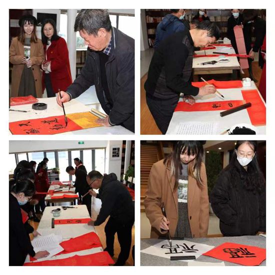 詹其友老师向参会人员讲授了几种常见的“福”字写法,并传授“福”字书写的要领,在他的指导下,参会人员动手尝试写“福”字,为来年的工作和生活写下美好的祝愿。
