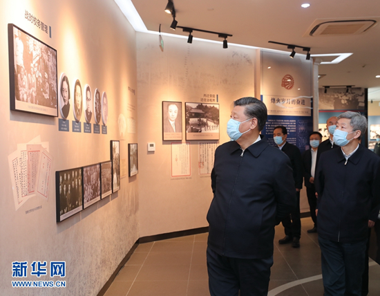 2020年4月20日至23日,中共中央总书记、国家主席、中央军委主席习近平在陕西考察。这是4月22日,习近平在西安交通大学交大西迁博物馆参观。 新华社记者 鞠鹏/摄